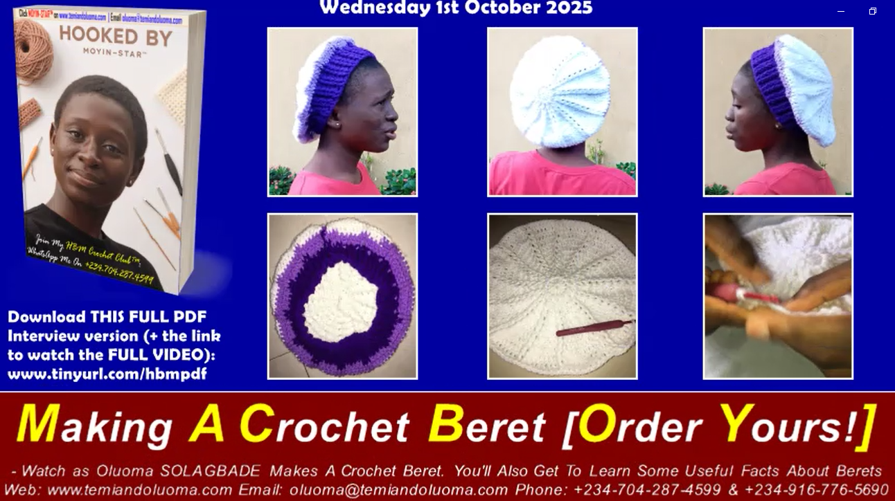 Making A Crochet Beret [Order Yours!] – Watch as Oluoma SOLAGBADE Makes A Crochet Beret. You’ll Also Get To Learn Some Useful Facts About Berets